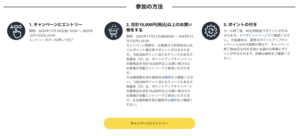 - ポイントアップキャンペーンにエントリーする